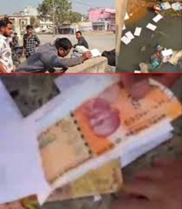 नगरीय निकाय चुनाव में मतदान के पहले प्रत्याशी पैसे बांटकर मतदाताओं को लुभाने में जुटे हैं. ऐसे ही एक मामले में निर्दलीय प्रत्याशी ने भाजपा प्रत्याशी को पैसा बांटते रंगे हाथ पकड़ा. इस मामले में जब विवाद बढ़ा तो प्रत्याशी ने नोटों से भरा लिफाफा नाले में फेंक दिया.