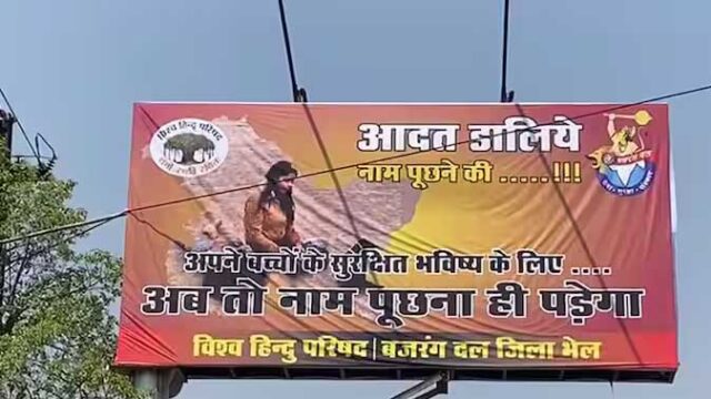 दक्षिण कश्मीर के पहलगाम में हुए आतंकी हमले का विरोध देश भर में हो रहा है. इस बीच मध्य प्रदेश की राजधानी भोपाल में हिन्दू संगठनों ने कुछ ऐसे पोस्टर और बैनर लगा दिए हैं, जो विवादित हैं. विश्व हिन्दू परिषद और बजरंग दल ने भोपाल में जो पोस्टर लगाए हैं, उनपर लिखा है- 'अब तो नाम पूछना पड़ेगा'.