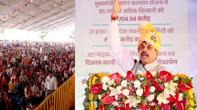 मुख्यमंत्री डॉ. यादव ने 1870 करोड़ रुपए की लागत से बनने वाली धार माइक्रो उद्वहन सिंचाई परियोजना एवं धार जिले के लिए 277 करोड़ के लागत से विकास कार्यों का भूमि-पूजन एवं लोकार्पण किया। उन्होंने प्रदेश के 85 लाख से अधिक किसानों को मुख्यमंत्री किसान कल्याण योजना वर्ष 2025-26 की प्रथम किश्त के रूप में 1704.94 करोड़ रुपए की राशि हितग्राहियों के बैंक खातों में सीधे अंतरित की। मुख्यमंत्री डॉ. यादव ने कहा कि प्रदेश में नदी जोड़ो परियोजनाओं के कार्य प्रदेश में समृद्धि लाएंगे। प्रदेश का सिंचाई रकबा 55 लाख हेक्टेयर हो चुका है, अब इसे 1 लाख करोड़ हेक्टेयर तक ले जाने का लक्ष्य है। उमरबन के 1 लाख 3 हजार किसानों को भी नई सिंचाई परियोजना का लाभ मिलेगा।