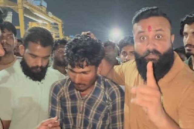 मध्य प्रदेश के इंदौर में करणी सेना ने देशविरोधी नारेबाजी करने वाले एक युवक की जमकर धुनाई करने के बाद पुलिस के हवाले कर दिया। मामला गांधी नगर क्षेत्र का है, जहां मेट्रो प्रोजेक्ट में कार्यरत एक कर्मचारी का वीडियो सोशल मीडिया पर वायरल हो गया। वायरल वीडियो में युवक 'पाकिस्तान जिंदाबाद' के नारे लगाते, भारत के खत्म होने और प्रधानमंत्री के खिलाफ अपशब्द कहता नजर आ रहा है। इस वीडियो के सामने आने के बाद श्री राजपूत करणी सेना ने तुरंत एक्शन लेते हुए युवक को पकड़कर थाने पहुंचाया।