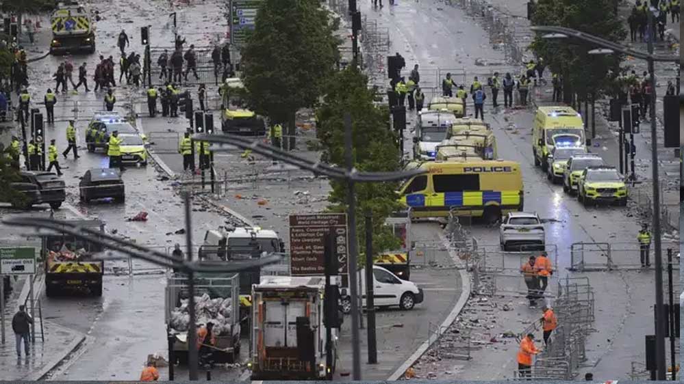 ब्रिटेन के लिवरपूल शहर में फुटबॉल प्रीमियर लीग की खिताबी जीत का जश्न मना रही भीड़ को कार ने रौंद दिया, जिसमें 47 लोग घायल हो गए हैं। घायलों में चार बच्चे हैं। ब्रिटिश मीडिया आउटलेट द सन ने बताया कि 27 घायलों को चार अस्पतालों में भर्ती किया गया है, जिनमें दो को गंभीर चोटें आई हैं। 20 लोगों को घटनास्थल पर ही इलाज किया गया। पुलिस ने कहा है कि यह आतंकवादी हमला नहीं था। पुलिस ने इसे आतंकवादी घटना नहीं कहा है और वे जांच में किसी और की तलाश नहीं कर रहे हैं।