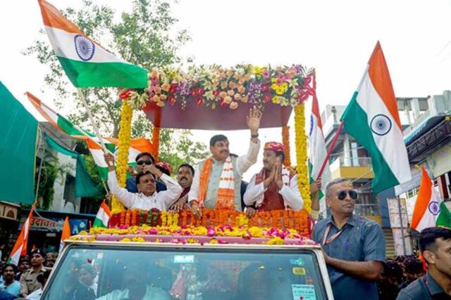 ऑपरेशन सिंदूर की सफलता पर भारत के वीर सैनिकों के सम्मान में बुधवार को हाटपिपल्या में भव्य तिरंगा यात्रा निकाली गई। तिरंगा यात्रा का शुभारम्भ मुख्यमंत्री डॉ. मोहन यादव ने किया। तिरंगा यात्रा के साथ बजरंग चौराहा से कलश यात्रा का भी शुभारंभ हुआ।तिरंगा यात्रा हाटपीपल्या मुख्य मार्ग होते हुए कार्यक्रम स्थल मेला ग्राउंड पर सम्पन्न हुई। यात्रा में मुख्यमंत्री डॉ. यादव विशेष रथ में सवार थे। सभी धर्म और समाज के लोगों ने देश भक्ति और राष्ट्रीय एकता की भावना से ओत-प्रोत होकर उत्साह पूर्ण माहौल में यात्रा में सहभागिता की।