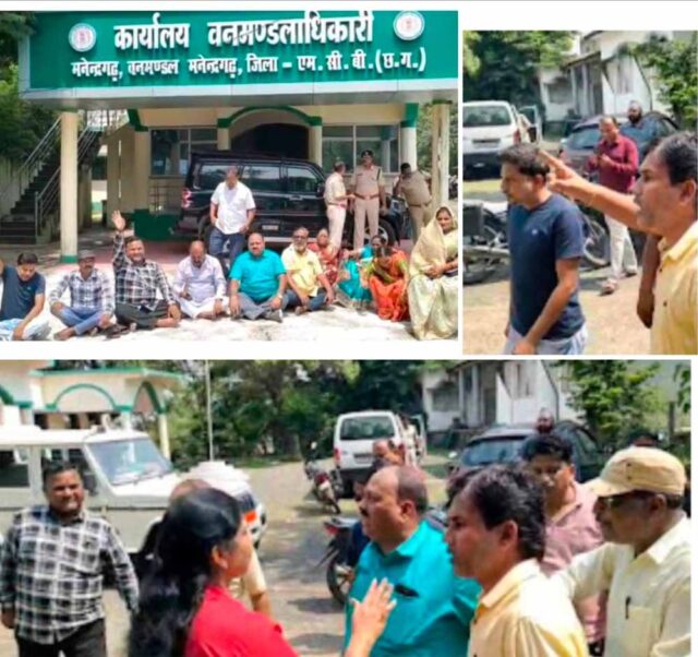 छत्तीसगढ़ मनेंद्रगढ़ जिले में वन विभाग और स्थानीय निकाय के बीच टकराव खुलकर सामने आ गया है। डीएफओ मनीष कश्यप के खिलाफ नगरपालिका अध्यक्ष प्रतिमा यादव, उपाध्यक्ष धर्मेंद्र पटवा, विधायक प्रतिनिधि सरजू यादव और दोनों दलों के पार्षदगण ने वन मंडलाधिकारी कार्यालय के समक्ष धरना प्रदर्शन किया। धरने पर बैठे जनप्रतिनिधि “डीएफओ हटाओ”, “तानाशाही नहीं चलेगी” जैसे नारे लगाते रहे। इस बीच धरने को समर्थन देने भाजपा जिलाध्यक्ष चंपादेवी पावले भी पहुंची मुद्दा था भालुओं का आतंक, जवाब मिला अपमान से ! नगरपालिका अध्यक्ष प्रतिमा यादव ने बताया कि वे भालू के लगातार विचरण से आतंकित वार्डों के समाधान के लिए ज्ञापन देने पहुंचे थे, लेकिन डीएफओ मनीष कश्यप ने जनप्रतिनिधियों से अभद्र भाषा में बात की और मिलने से इनकार कर दिया‌उन्होंने कहा, “हम वार्डवासियों की समस्या लेकर पहुंचे थे, लेकिन डीएफओ ने कहा कि वो सबसे नहीं मिलेंगे। जब फोन उठाने की बात की गई तो जवाब मिला – ‘मेरा मन’। यह सरासर तानाशाही और जनप्रतिनिधियों का अपमान है