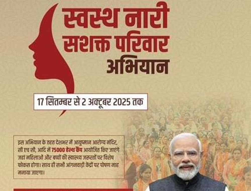 महिलाओं के स्वास्थ्य और सशक्तिकरण को केंद्र में रखते हुए स्वास्थ्य एवं परिवार कल्याण मंत्रालय 17 सितम्बर से 2 अक्टूबर तक देशव्यापी “स्वस्थ नारी, सशक्त परिवार अभियान” शुरू करने जा रहा है. इस राष्ट्रीय अभियान का शुभारंभ प्रधानमंत्री नरेन्द्र मोदी इंदौर, मध्यप्रदेश से करेंगे.