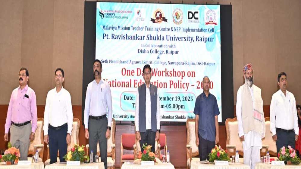 पंडित रविशंकर शुक्ल विश्वविद्यालय, रायपुर में आज राष्ट्रीय शिक्षा नीति-2020 पर आधारित एक दिवसीय कार्यशाला का आयोजन किया गया। इस कार्यशाला का आयोजन मालवीय मिशन टीचर ट्रेनिंग सेंटर एवं एनईपी इम्प्लीमेंटेशन सेल द्वारा किया गया।