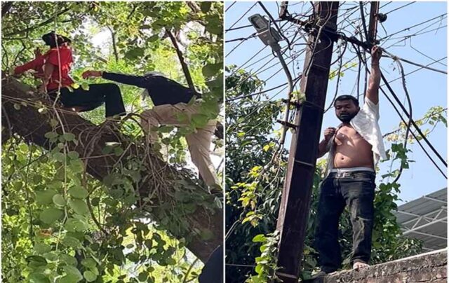 इसी दौरान राजू नाम का युवक भी विरोध कर रहा था। पहले पुलिस ने उसे अपने वाहन में बैठाया लेकिन वह भागकर अतिक्रमण हटाए जाने वाली जगह पर पहुंचा। युवक वहां पर एक दीवार पर चढ़ा और बिजली सप्लाई के तार को पकड़ लिया। मौके पर मौजूद अधिकारियों ने तत्काल उस क्षेत्र की विद्युत सप्लाई बंद करवाई और युवक को पकड़कर थाने ले गए। युवती को पेड़ से उतारने के प्रयास में एक पुलिसकर्मी भी गिर गया और उसे चोट आई।