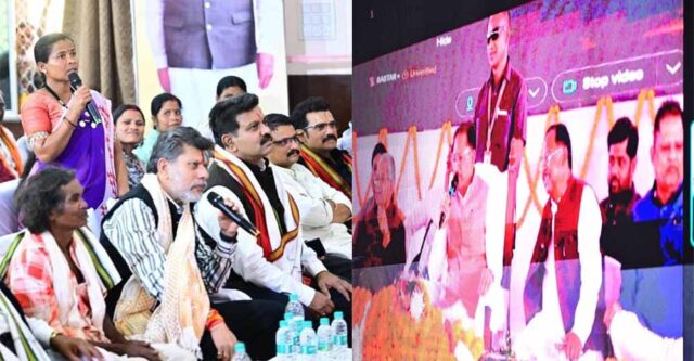 जगदलपुर के वीर सावरकर भवन में आयोजित आदान सहायता राशि वितरण कार्यक्रम के दौरान बिलासपुर जिले से वर्चुअल तौर पर जुड़े मुख्यमंत्री  विष्णु देव साय ने बस्तर जिले के मुंडापाल की महिला कृषक बसंती कश्यप से रूबरू होकर उन्हें समर्थन मूल्य पर धान खरीदी की प्रोत्साहन राशि मिलने की बधाई देते हुए उक्त राशि के उपयोग के बारे में पूछा।
