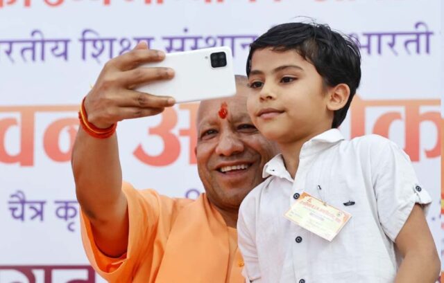 मुख्यमंत्री योगी आदित्यनाथ ने मंच पर बुलाया, सेल्फी ले रहे बच्चे को किया सम्मानित